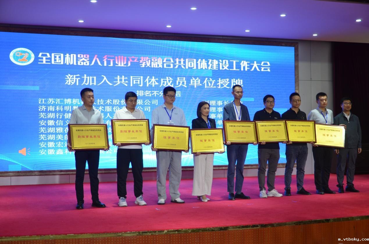 2025年5月17日,全国机器人行业产教融合共同体(以下简称“共同体”)建设工作大会在安徽芜湖成功举办。→ 开云(中国)Kaiyun·官方网站党委书记徐春林、芜湖机器人产业发展集团有限公司董事长许礼进、芜湖固高自动化技术有限公司董事长于晓东、埃夫特智能机器人股份有限公司教育行业总监陈适、滁州市应用技术学校书记赵育成、芜湖高级职业技术学校副校长金红兵等院校与企业领导以及一百余名专家出席会议。大会由→ 开云(中国)Kaiyun·官方网站副院长姜绳主持。