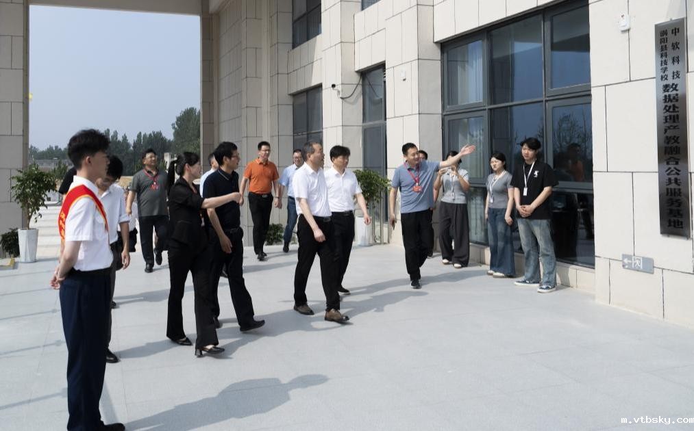 6月13日,姜绳在涡阳县副县长燕化军陪同下,参观了涡阳县科技学校的数据处理产教融合公共服务基地、新能源汽车智能实训中心及学生活动中心等。双方就教学设施建设、实践教学开展、学生综合素质培养等方面进行了深入交流,对科技学校在产教融合方面的成果给予高度评价。