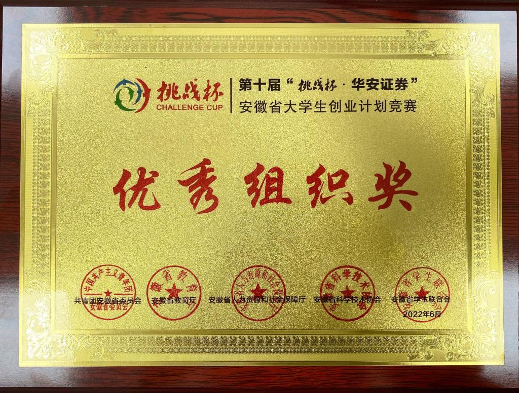 第十届“挑战杯•华安证券”安徽省大学生创业计划大赛“优秀组织奖”