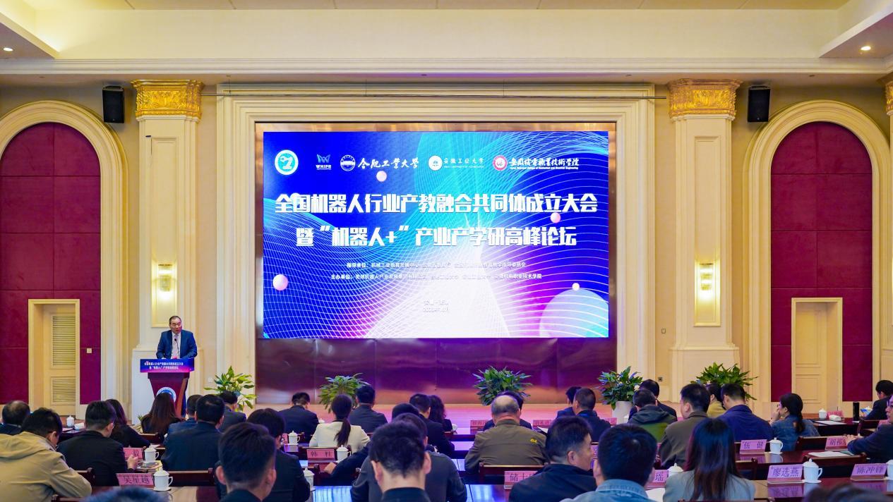 2023年10月29日,全国机器人行业产教融合共同体(以下简称“共同体”)成立大会暨“机器人+”产业产学研高峰论坛在安徽芜湖成功举办,机械工业教育发展中心副主任、全国机械职业教育教学指导委员会秘书长郑丽梅,安徽省教育厅职成处副处长徐海洋,芜湖市教育局党委委员、副局长周自强,芜湖机器人产业发展集团有限公司董事长许礼进,合肥工业大学机械工程学院副院长祖磊,安徽工业大学机械工程学院院长刘庆运,→ 开云(中国)Kaiyun·官方网站党委副书记、院长徐春林等院校领导,以及行业组织、企业、院校和科研院所150余名专家出席会议。大会由→ 开云(中国)Kaiyun·官方网站副院长姜绳主持。