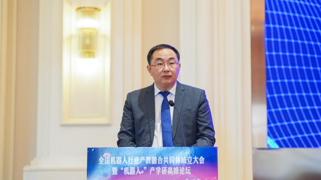 许礼进在致辞中表示全国机器人行业产教共同体建设作为今后的重点工作并且将进一步加大支持力度,充分发挥自身优势,在资源聚合、建设咨询及成果打造等方面为机器人行业产教融合共同体提供支持和指导。