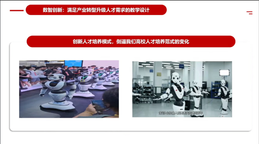 随后,盛鸿宇、陈永在线上分别以“创新行动、‘五金’重构-点燃新质生产力的人才引擎”、“方案变化引领教学改革,以赛促教锤炼良匠名师”为题,详细介绍了人工智能、知识图谱等前沿数字技术在高等教育教学中的应用与融合。